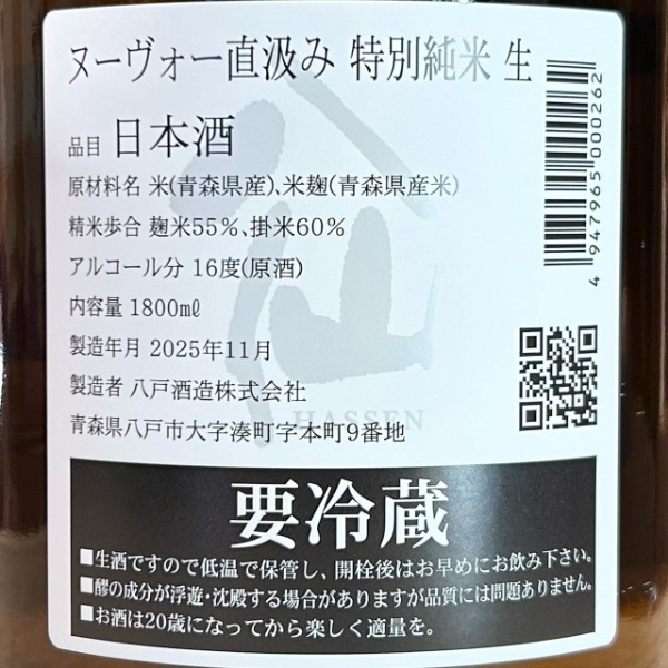 | 銘柄名 | 陸奥八仙 ヌーヴォー直汲み 特別純米 生原酒 |