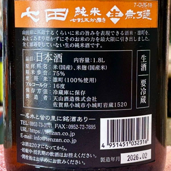 | 銘柄名 | 七田 純米 七割五分磨き 雄町 無濾過生 |