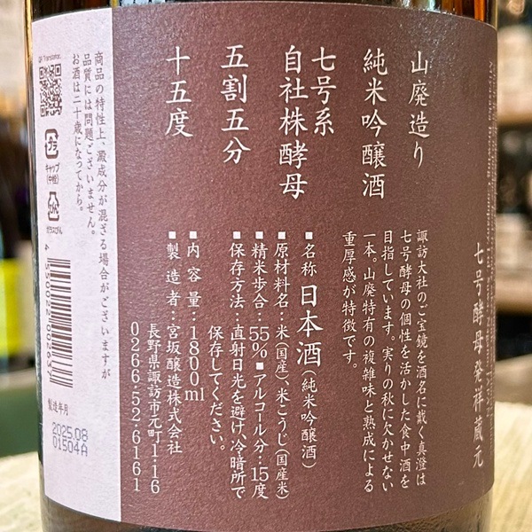御柱祭でも有名な、長野県の諏訪の蔵元 (諏訪、富士見と2つの蔵があります)かつて行った徹底的な酒質向上で、「真澄」ブランドが全国区になりました。現在の清酒の約70%を占めると言われる7号酵母の発祥の蔵元でもあります。酒造好適米を100%使用し、その多くで長野県産米を使用するなど、地元に根差した酒造りを行います。