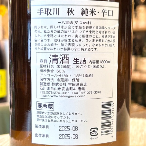 | 銘柄名 | 手取川 秋 純米 辛口 |