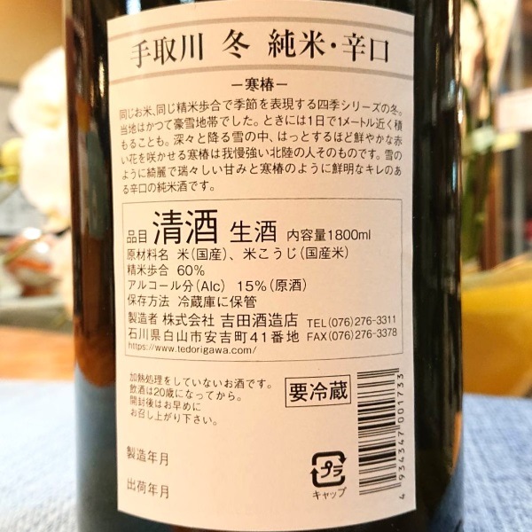 | 銘柄名 | 手取川 冬 純米 辛口 |
