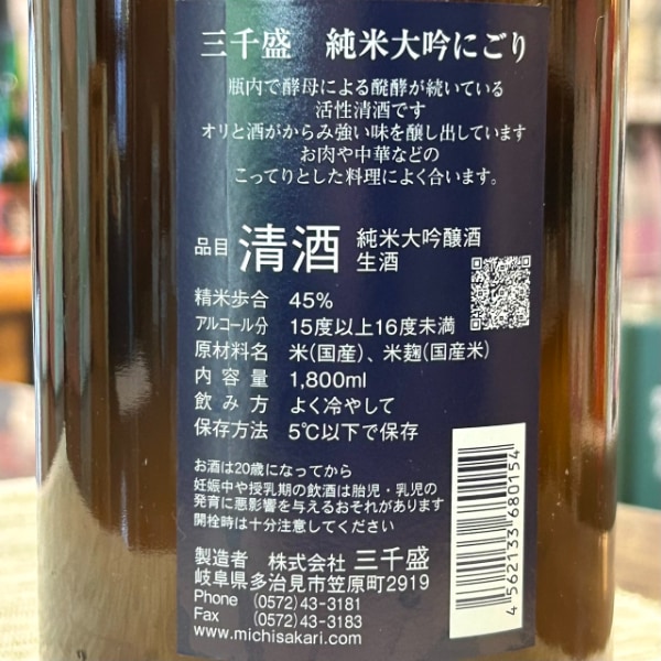 | 銘柄名 | 三千盛 純米大吟 冬にごり 活性生酒 |