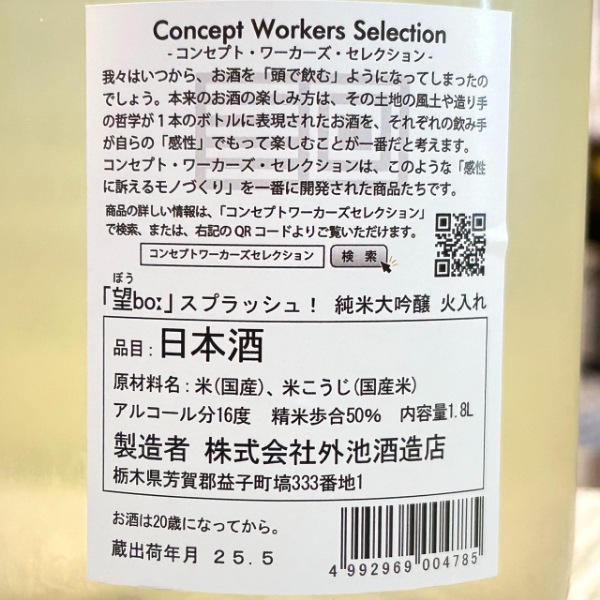 | 銘柄名 | 望 スプラッシュ 純米大吟醸 火入れ |