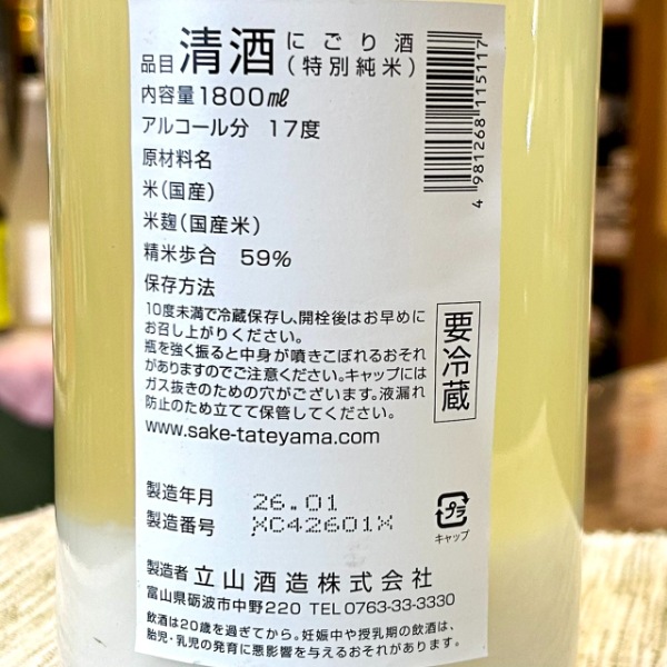| 銘柄名 | 立山 にごり酒 特別純米酒 活性生原酒 |