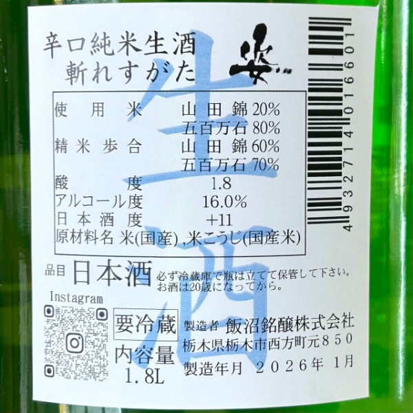 | 銘柄名 | 姿 斬れすがた 特別純米 辛口 生 |