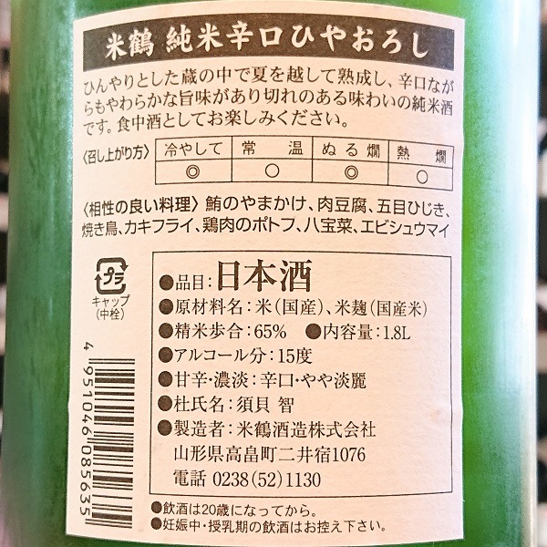 | 銘柄名 | 米鶴 純米辛口 ひやおろし |