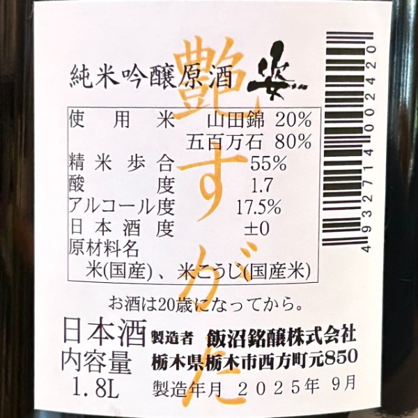 | 銘柄名 | 姿 艶すがた 純米吟醸原酒 |