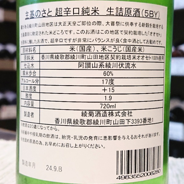 | 銘柄名 | 綾菊 主基のさと 超辛口 純米酒 生詰原酒 |