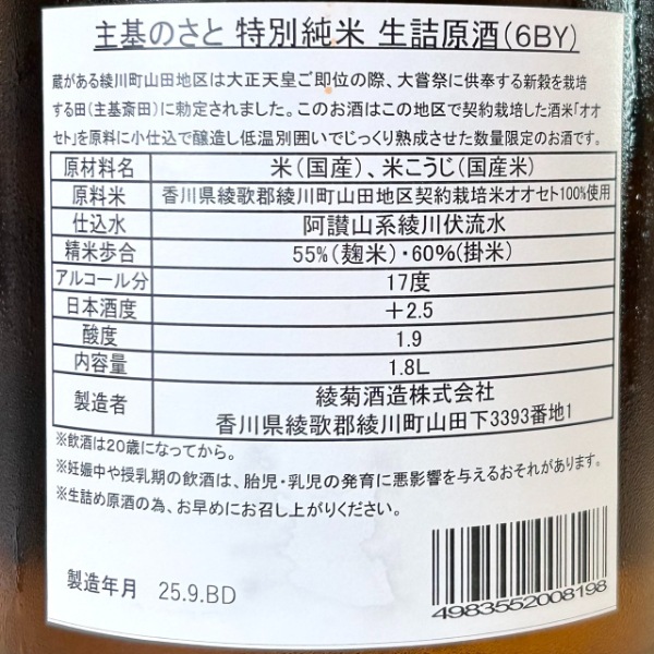 | 銘柄名 | 綾菊 主基のさと 特別純米 生詰原酒 |