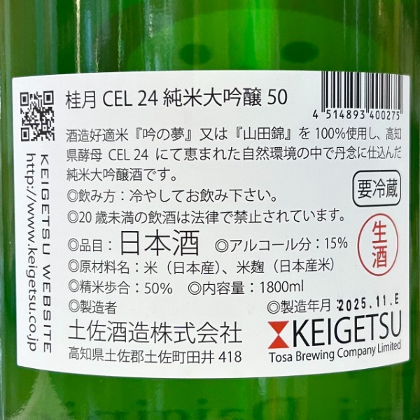 | 読み方 | けいげつ せるにじゅうよん じゅんまいだいぎんじょう50 しぼりたて |