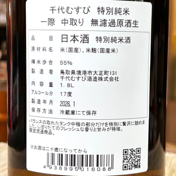 千代むすび 一際 特別純米 中取り 1800ml / 720ml ※26/4価格改定
