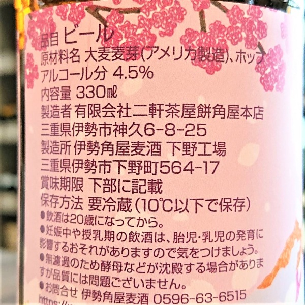 | 銘柄名 | 伊勢角屋麦酒 さくらペールエール |