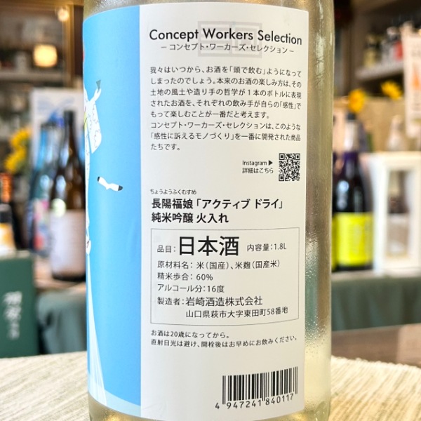 | 銘柄名 | 長陽福娘 アクティブドライ 純米吟醸 火入れ |