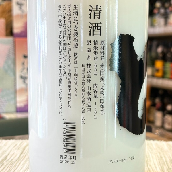 | 詳細 | 日本酒度:+4 / 酸度:1.9 / アミノ酸度:1.5 / 酵母:秋田純米酵母 |