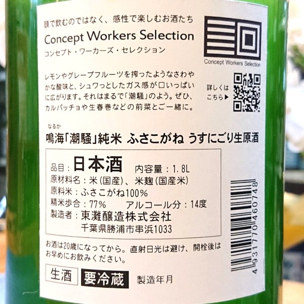 | 読み方 | なるか しおさい じゅんまいふさこがね うすにごりなまげんしゅ |