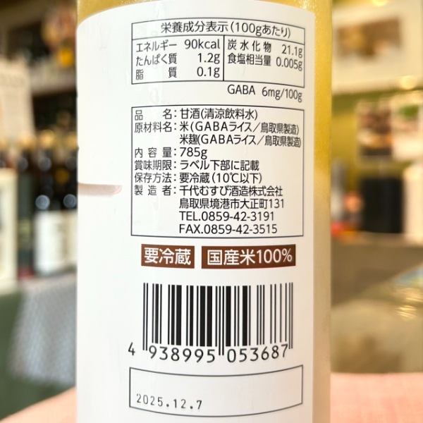 | 銘柄名 | 千代むすび ギャバの甘酒 GABA米・糀甘酒 ノンアルコール |