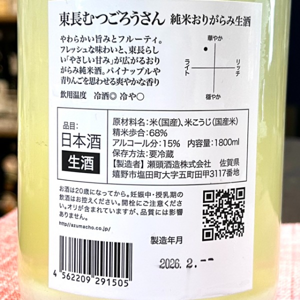 | 銘柄名 | 東長 むつごろうさん 純米おりがらみ生 |