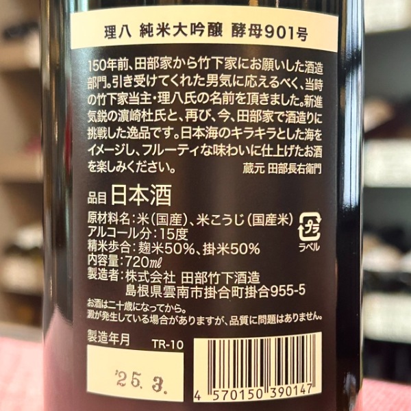理八 純米吟醸 901号 火入れ 1800ml / 720ml [不定期入荷]