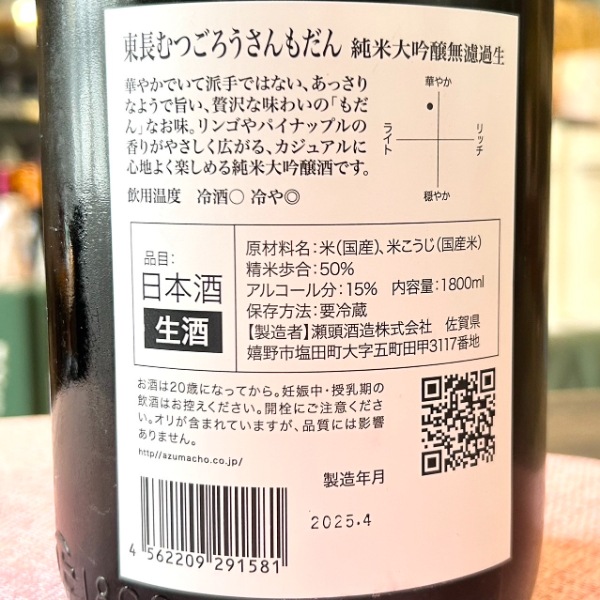 | 銘柄名 | 東長 むつごろうさん もだん 純大無濾過生 |