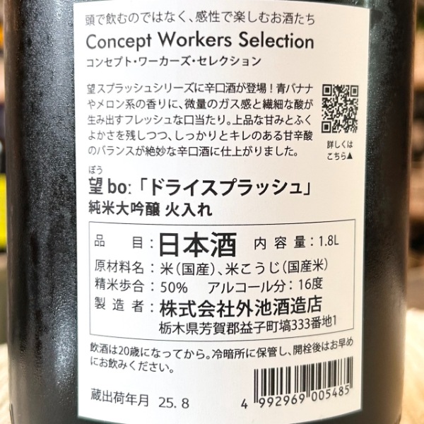 | 銘柄名 | 望 ドライスプラッシュ 純米大吟醸 火入れ |