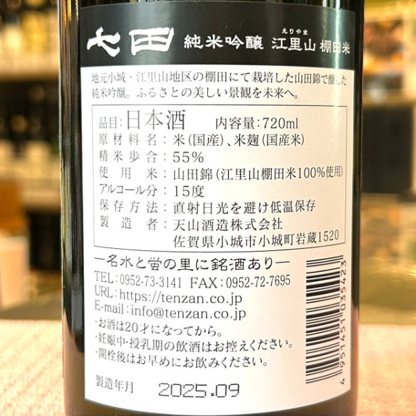 | 銘柄名 | 七田 純米吟醸 江里山 棚田米 |