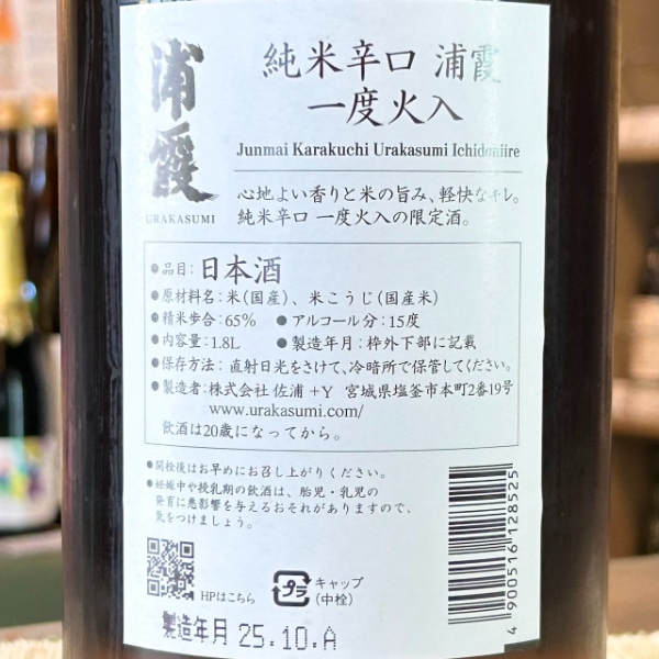 | 銘柄名 | 浦霞 純米辛口 一度火入れ |